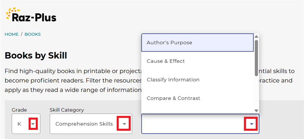 - Bước 2: Mở link https://www.raz-plus.com/books/books-by-skill/