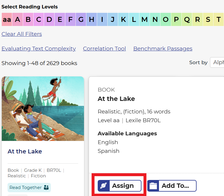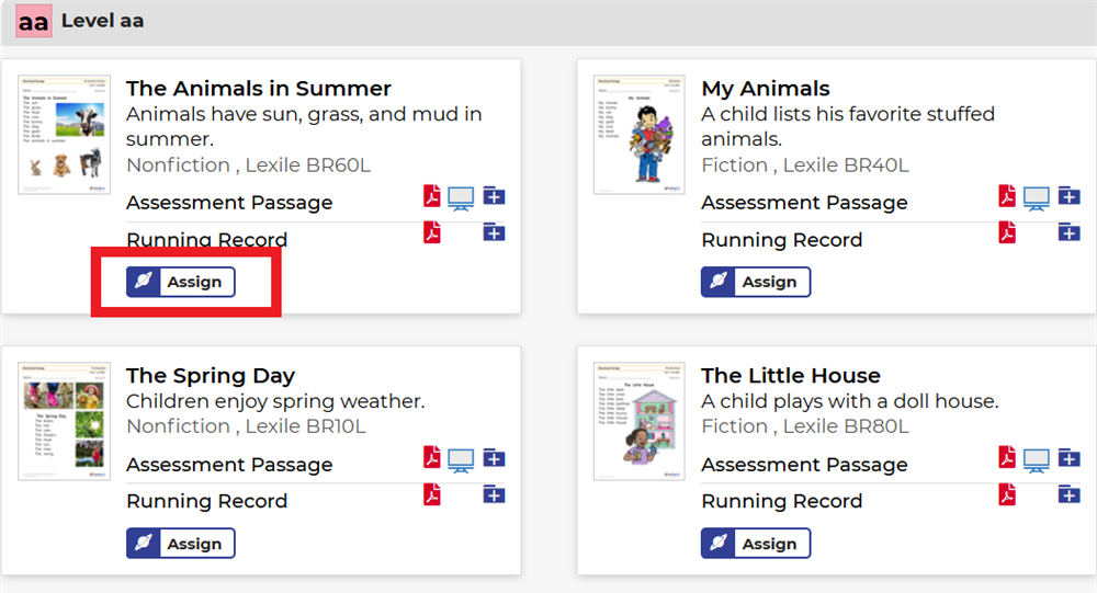 - Bước 4: Chọn level, sau đó chọn phiếu đọc thích hợp rồi nhấn Assign.